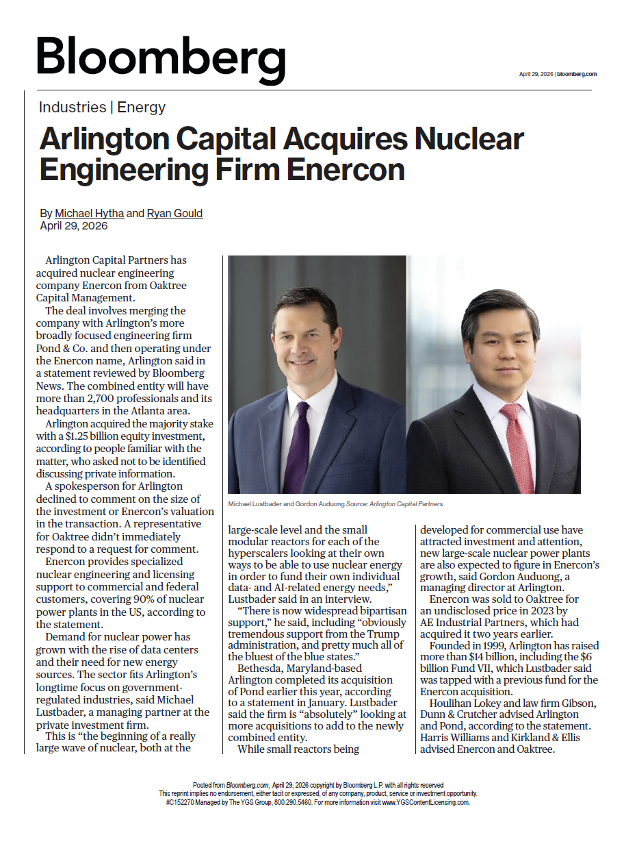 Access a pdf of the full article here: Arlington Capital Acquires Nuclear Engineering Firm Enercon